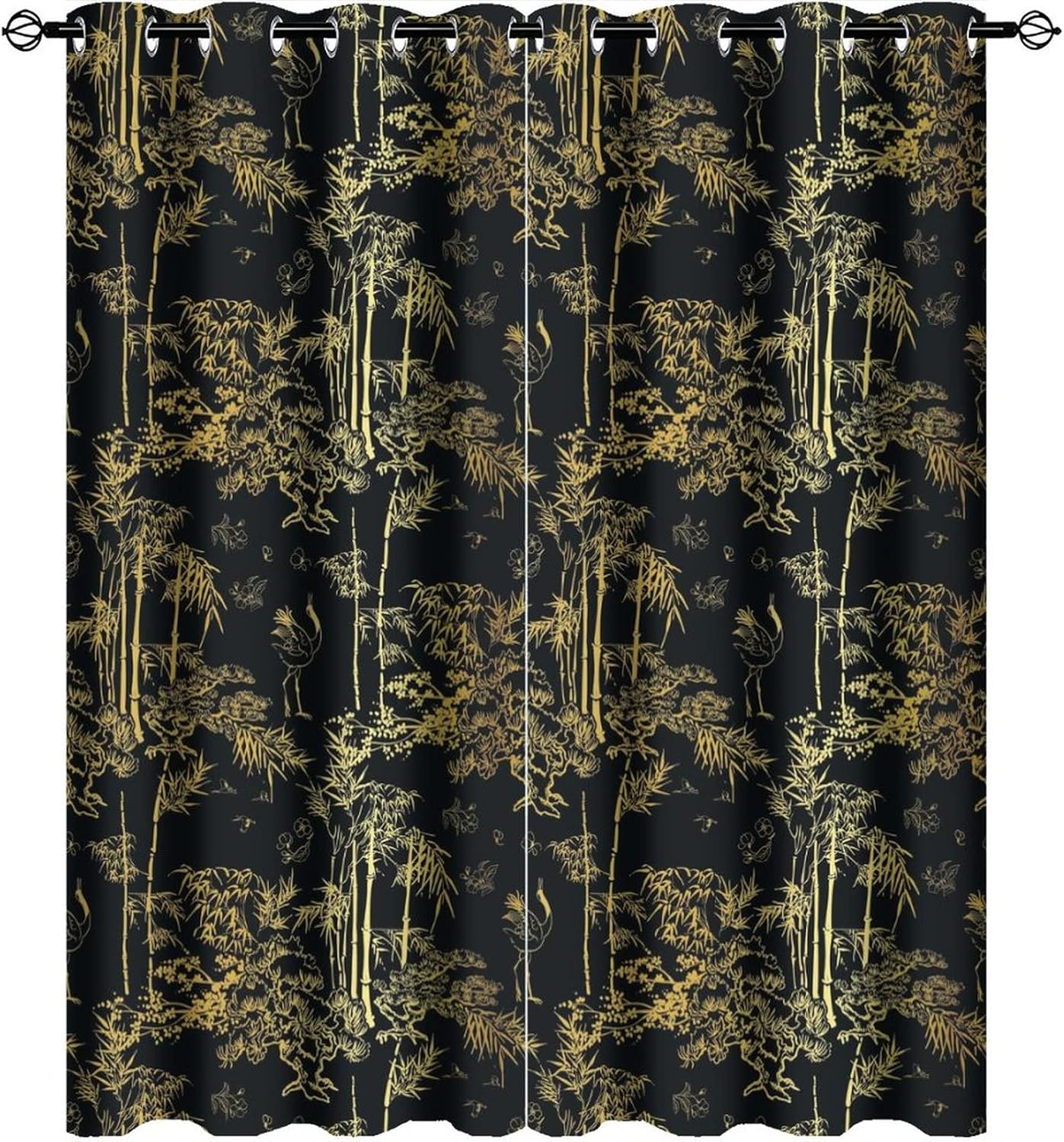 JretailAx Abstract Modern Japanese Crane Patterned Blackout CurtainsThis Abstract Modern Japanese Crane Curtains liven up your indoor or outdoor spaces with a sense of airiness and beauty.Workmanship & Design:Each curtain is machine-made and neatly sewn with no loose threads. Soft, high-quality fabrics ensure long-lasting durability.Beautiful patterns, clever colour matching and advanced printing and dyeing processes for vibrant, fade-free colours.This Black Gold Chinese Crane Bamboo Print Curtains is suitable for: living rooms, bedrooms, boys' rooms, girls' rooms, nurseries, dining rooms, offices, dormitories, window sills, etc.Care instructions.Machine wash in cold water or hand wash, do not bleach, iron at low temperature.Customer service.24 Hours customer support.