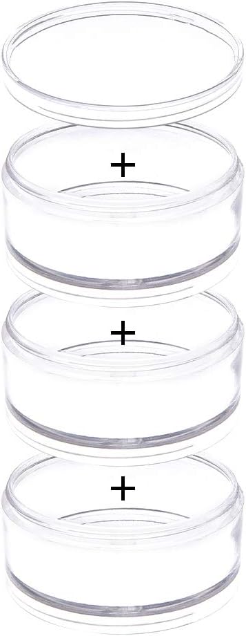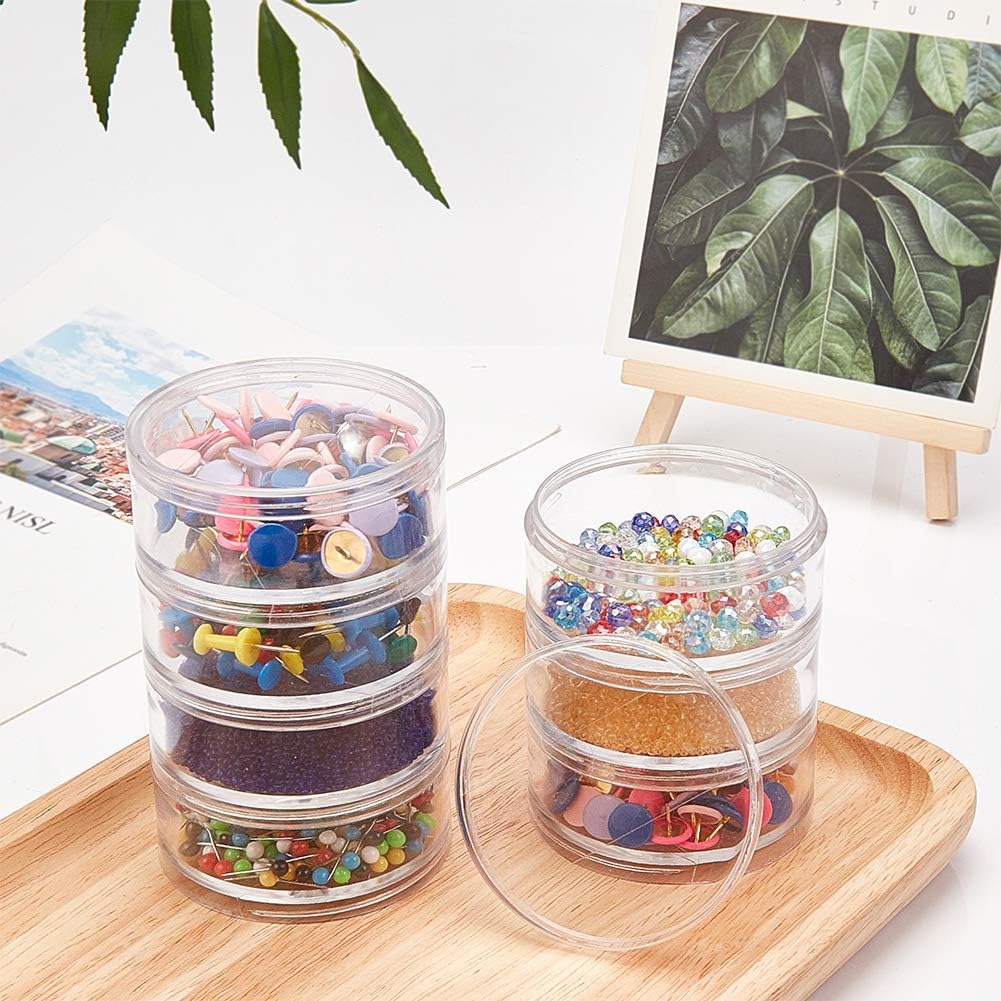 BENECREAT Round Stackable Beads Storage Containers Features: stackable and space saving see-through for display and quick distinguish securely screwd to the tray below it allowing access to any tray at any level Multi-size: 5ml 10ml 15ml 60ml 4 Mixed Size Great to store small parts in, like beads, small jewelry components, nail art charms, daily medications, etc!!